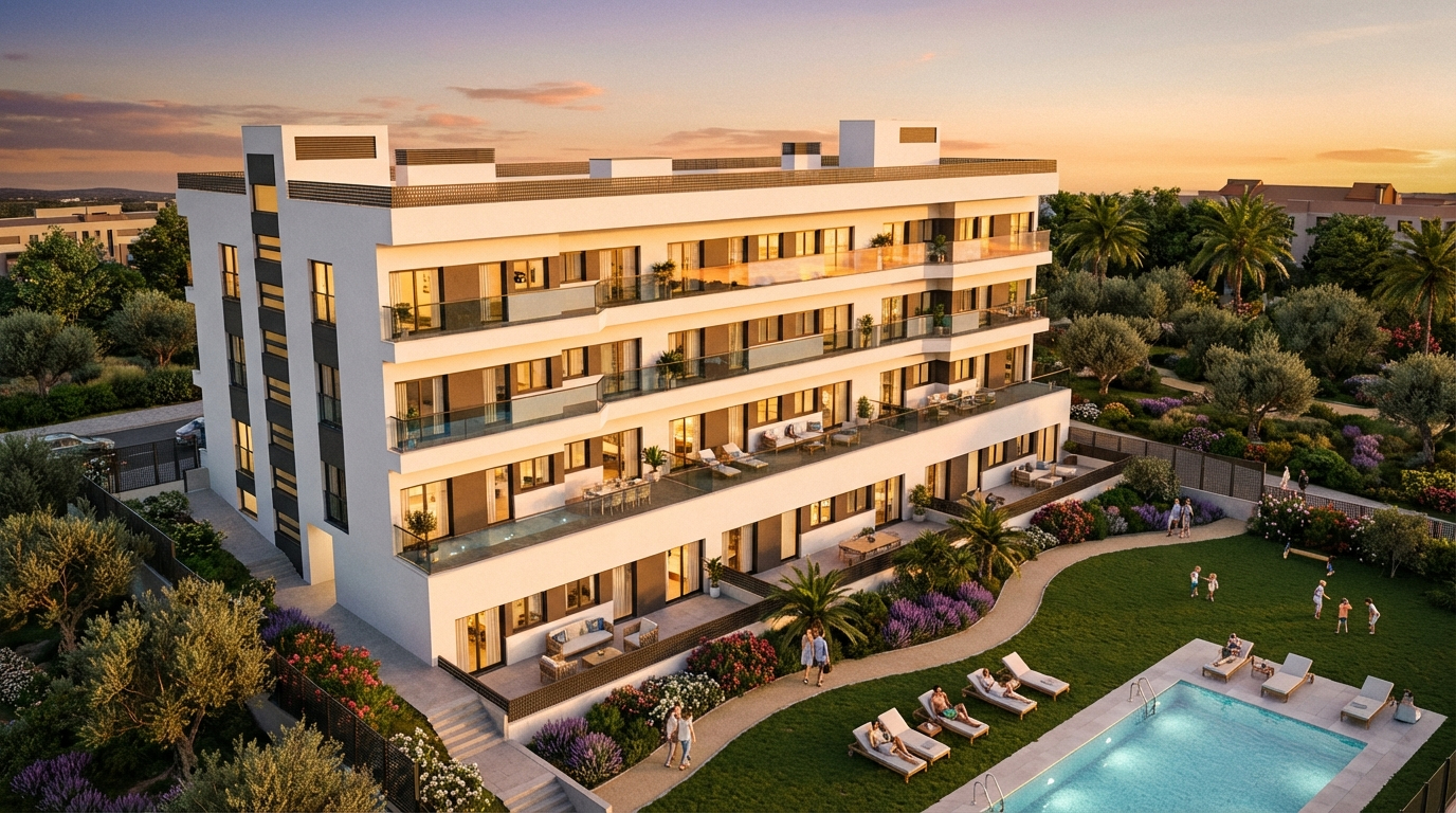 La promoción combina jardines, piscina privada y zona infantil con viviendas de 1, 2 y 3 dormitorios y soluciones que aportan comodidad real.
